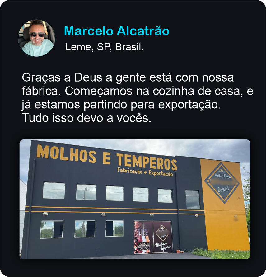 Graças a Deus a gente está com nossa fábrica. Começamos na cozinha de casa, e já estamos partindo para exportação. Tudo isso devo a vocês.